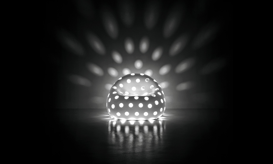 Kreslo odvodené od rodiny „Gumball“, s výrazným vizuálnym dojmom a vhodné do priestorov, kde sú potrebné riešenia s výraznou osobnosťou. Perforovaný povrch „vyprázdňuje“ predmety a dodáva im ľahkosť, ktorá je pre tento typ nábytku nevídaná.
