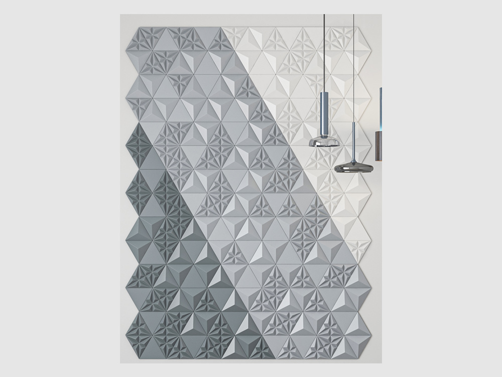 S týmto novým dizajnom predstavujeme prvý model 2. generácie a ponúkame vám nekonečné možnosti kombinácií troch nezávislých línií. S touto novou generáciou 3D obkladov, pri ktorých môžete použiť tri rôzne dlaždice v tvare Flat, Pyramid a Polygon spolu alebo samostatne, váš priestor získa pocit elegancie, ušľachtilosti a veľkoleposti.
