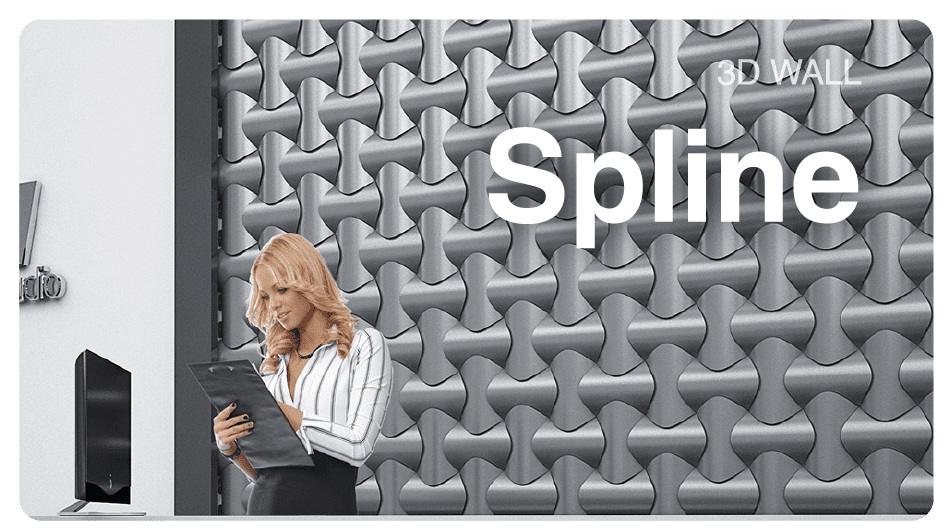 "Spline" má 3D pletený vzhľad, ktorý je inšpirovaný pohybom rozložených línií, a elegantný, jednoduchý a módny dizajn povrchu. Integrovaný modulárny panelový program "Spline" je plne prispôsobený požiadavkám, ktoré architekti kladú na panely. Je mimoriadne komplexný z hľadiska farieb a povrchových úprav. "Spline" je k dispozícii aj s LED osvetlením, ktoré sa dá umiestniť za panely a vďaka jedinečnému dizajnu 3D obkladov stien vytvára dojem hĺbky.